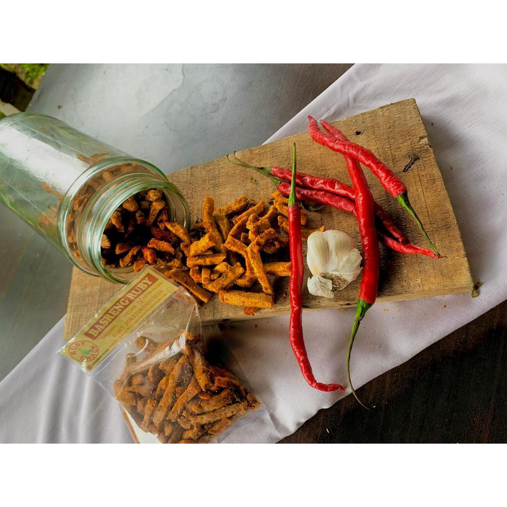 basreng pedas daun jeruk dibuat dari bahan pilihan juga bumbu pilahan diolah dengan sempurna varian rasa ORI(ASIN),PEDAS,EXTRAPEDAS.P-IRT NO 20632060101130-26