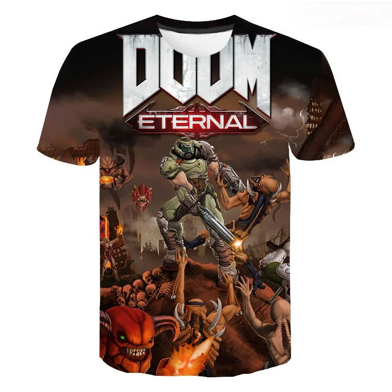 Футболка с 3D принтом Doom для мужчин и женщин, Повседневная Уличная одежда для мальчиков и девочек, модные крутые Топы