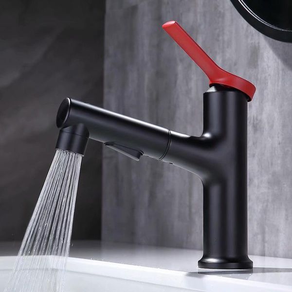 bath accessory set pull-out basin faucet copper and cold bathroom washbasin wash