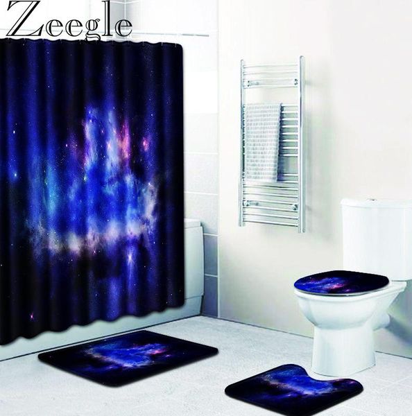 bath mats 4pcs printed shower curtain pedestal rug lid toilet cover mat set bathroom waterproof polyester carpet