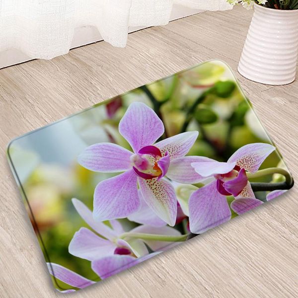 bath mats flower plant bathroom mat white pueple pink orchids green leaves entrance doormats kitchen bedroom non-slip carpets bathtub rugs