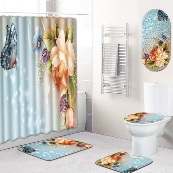 bath mats shower curtain bathroom mat combination five-piece set toilet carpet room foot rest and rugs