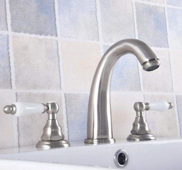bathroom basin faucet brushed nickel mixer tap double handles 3 pcs nnf694 sink faucets