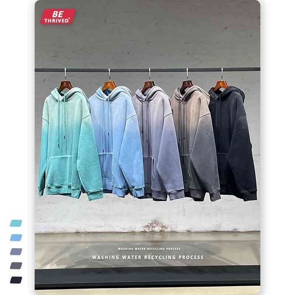 be men's wear | 2021 autumn and winter thickened 380g fleece wash gradient hoodie high street fashion brand sweater, Black