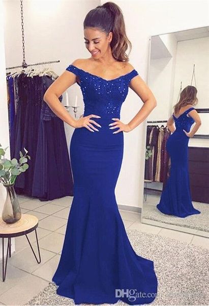 beaded lace royal blue prom dresses long women off the shoulder mermaid evening gowns cocktail party formal dress, Black