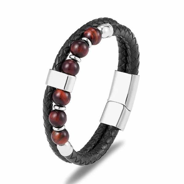 beaded, strands 2021 8mm natural stone men's bracelet black leather magnetic clasp 19 / 21 23cm jewelry