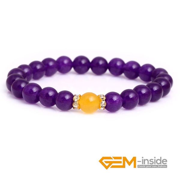 beaded, strands bracelet: 7.5 inches 8mm round shape purple jades gem-inside bead elastic bracelet jewelry for women creative gifts, Black