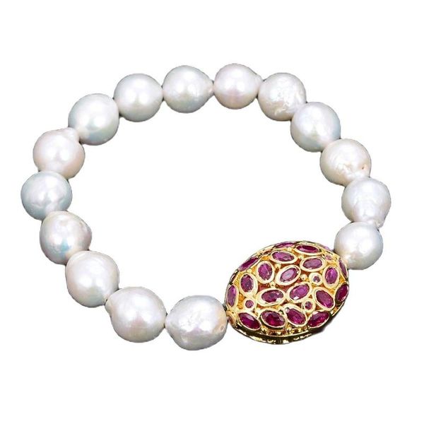 beaded, strands jk natural 14x16mm keshi pearl red cz gold-plated beads bracelet, Black
