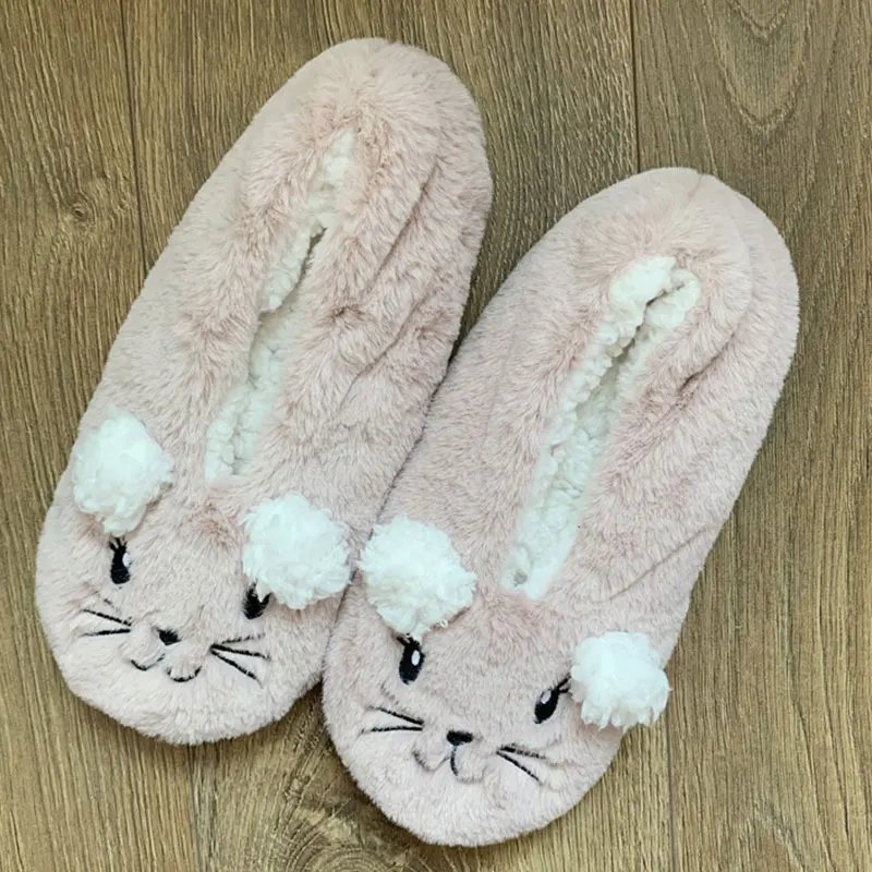 Sweet female animal slippers cozy soft home shoes for girls indoor warm fluffy slippers plush Cartoons house women socks slipper