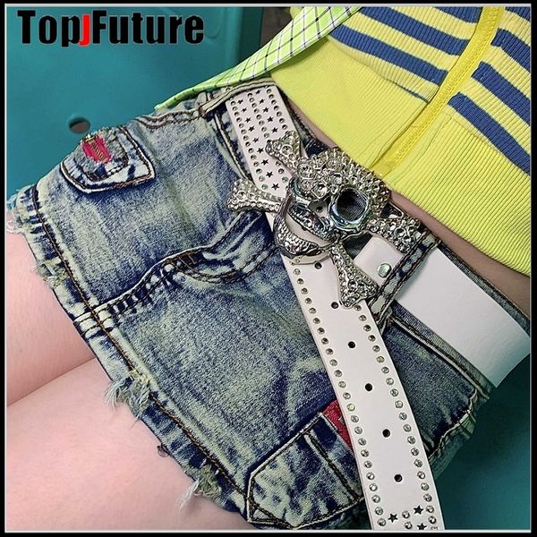belts 4 styles western cowgirl cowboy bling s belt skull studded belt women men fashion cinto de strass ceinture gift 230831, Black;brown