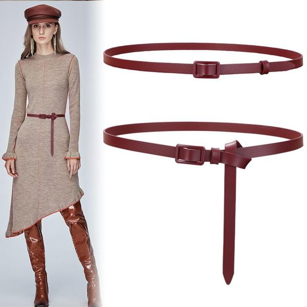 belts cowskin belt lady dermis decorative dresses leisure sweater knotted real leather thin no pin strap narrow knot waistbands, Black;brown