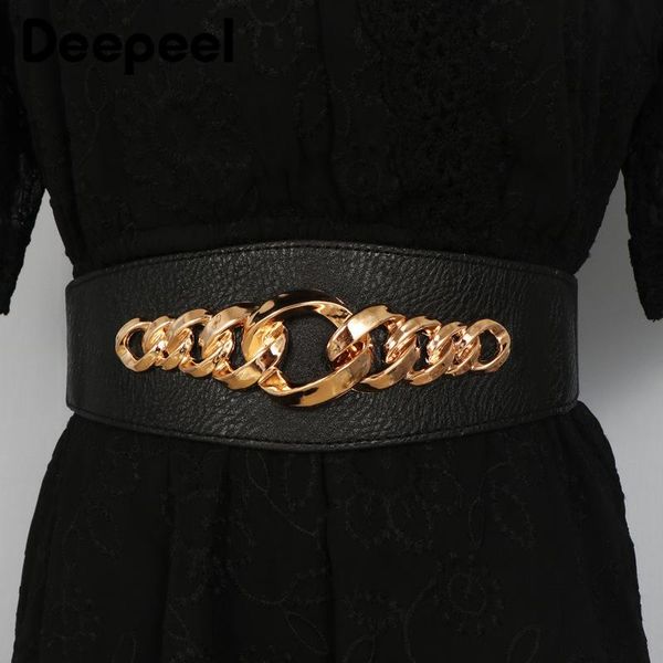 belts deepeel 1pc 7.5*63cm elastic wide metal cummerbunds waistband female fashion ring chain decorative corset luxury woman belt, Black;brown