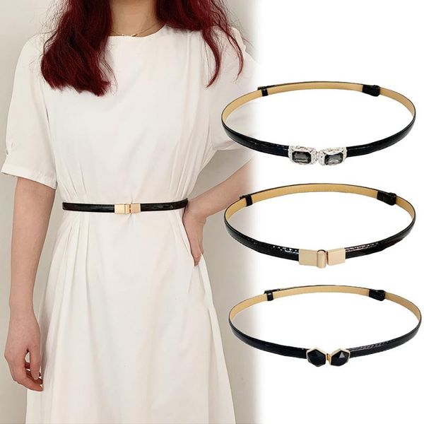 belts fashion leather thin belt for women designer buckle waist strap female dress jeans sweater decoration waistband, Black;brown
