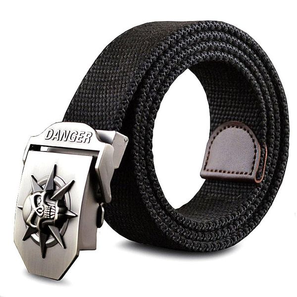belts fashion men's canvas belt skull metal tactics woven casual pants cool wild gift for men large size, Black;brown
