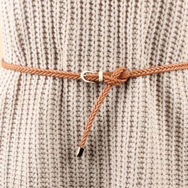belts fashion thin pu leather strap waistbands woven pin buckle belt jeans 2021 women dress fine, Black;brown