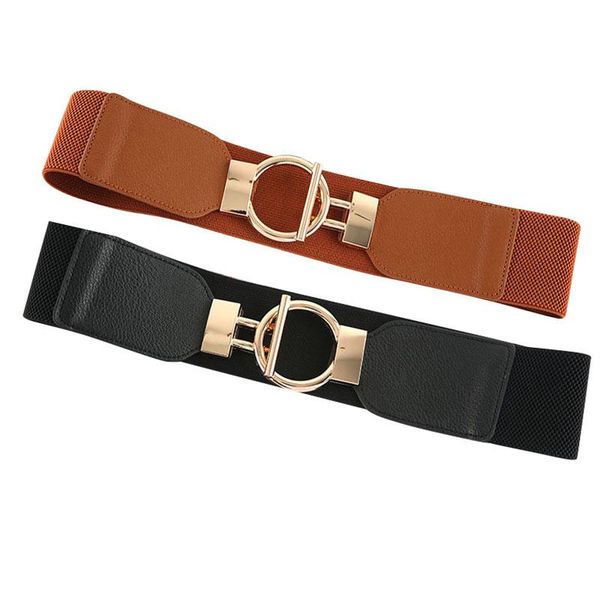 belts women fashion metal buckle waist corset wide elastic stretch leather cummerbunds ladies party dress belt waistband accessories, Black;brown
