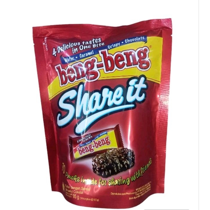 BENG-BENG Share It merupakan wafer cokelat dengan rice crispy yang berbalut cokelat susu yang nikmat.