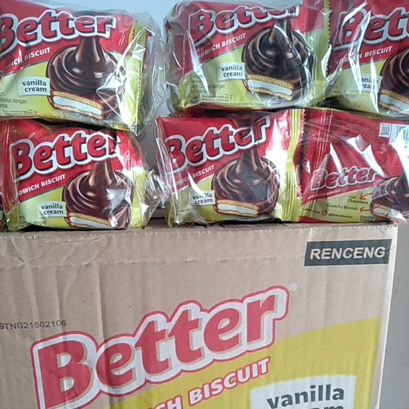 better sandwich biskuit rasa vanilla cream berat 27gr. 1 pak isi 10pcs
