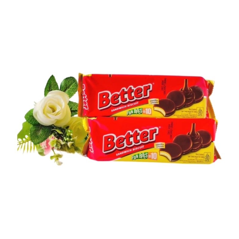Roma Better Vanilla Cream merupakan biskuit dengan isian cream vanila yang luarnya dilapisi dengan coklat. Menggunakan bahan-bahan pilihan dan proses pembuatan yang sangat hiegenis memberikan hasil yang renyah dan enak. Perpaduan antara rasa vanila dan coklat memberikan sensasi yang nikmat pada makanan ini.