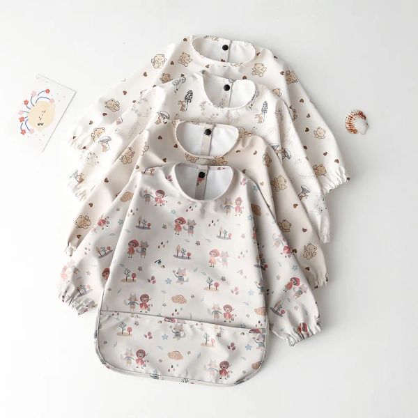 bibs burp cloths cute baby bibs toddler waterproof long sleeve apron cartoon animals children feeding smock bib baby stuff born accessor skl