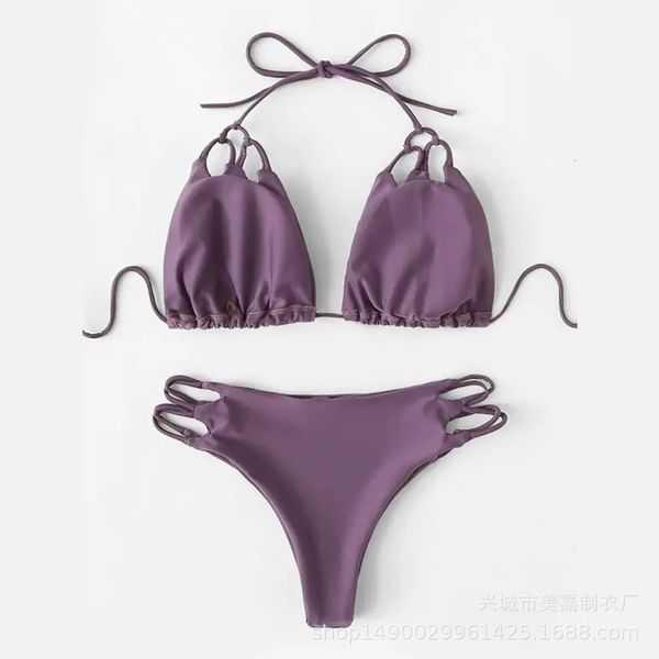 bikini swimsuit split solid u-shaped decorative swimming suit triangl swimwear, White;black