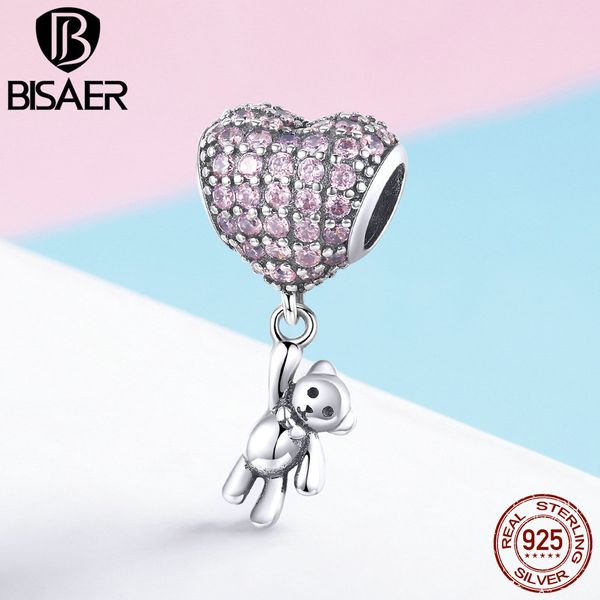 bisaer 925 sterling silver heart love crystal balloon bear charms beads fit valentines bracelets sterling silver jewelry ecc1054 q0531, Black