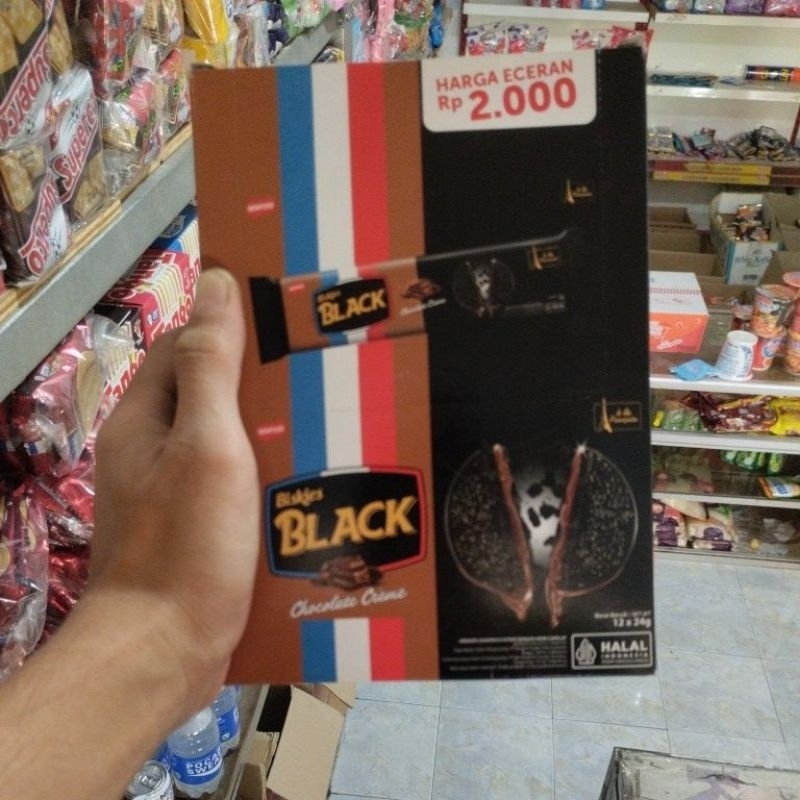 biskies black chocolate creme aroma cokelat yang menggoda selera biskuit tipis nan renyah krim cokelat lembut lumer di mulut..harga diatas perpack isi 12pcs...