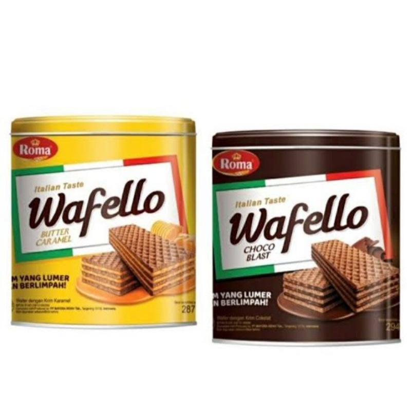 Rasa: Roma Wafello kaleng tersedia dalam berbagai rasa, seperti cokelat, keju, dan butter caramel.
