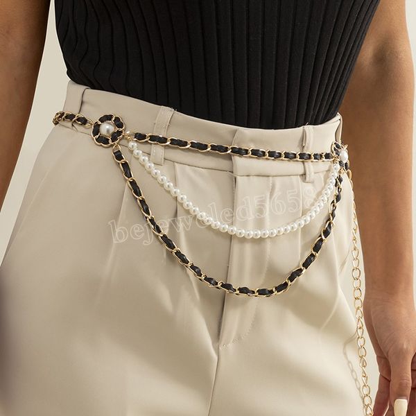 black flannel cross tassel waist belt women trendy elegant pearl chain female 2022 fashion waist chains jewelry gifts, Silver