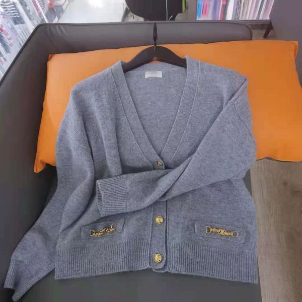 black/gray sweater 100% cashmere women's cardigans designer metal chain buttons sweaters womens 81258, White;black