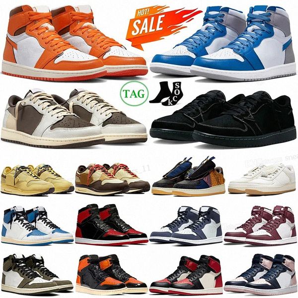 black phantom 1 retro basketball shoes jumpman 1s lows lost and found reverse mocha travis scotts fragment denim university blue mens traine