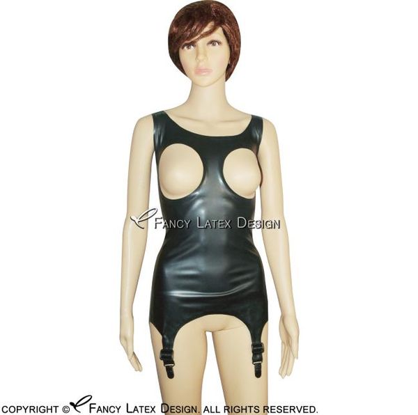 black sleeveless latex tank shirt rubber undershirts singlet with garter plus size 00433035890, Red;black