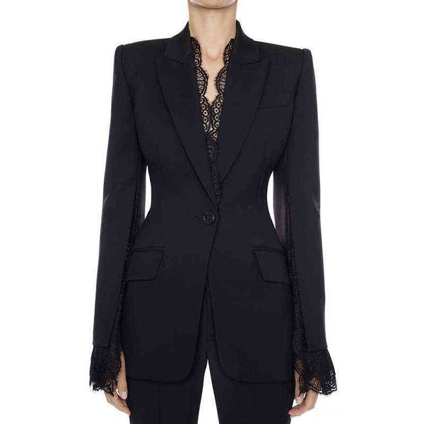black white blazer women jacket female 2021 autumn winter new split edges sleeves one button blazer j220813, White;black