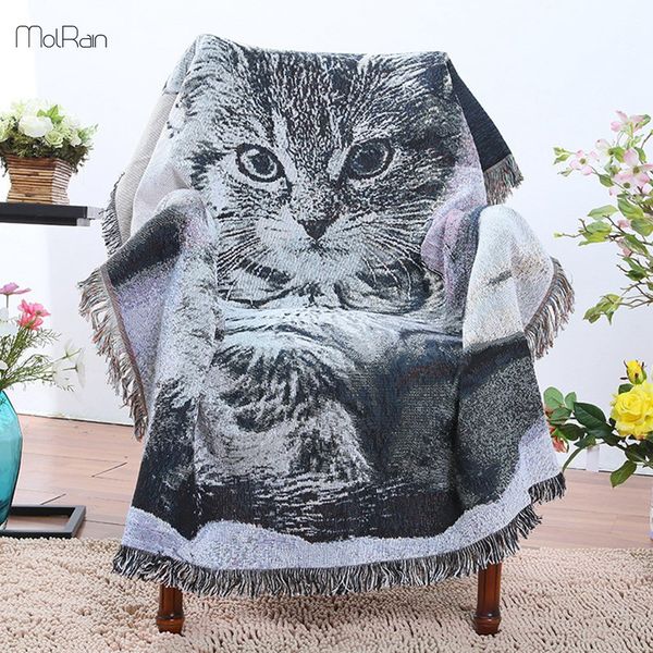 blankets 3d cat pattern throw blanket for bedroom sofa knitted thick tassel winter chair cover cotton soft 130*160cm