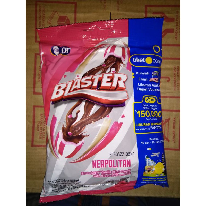 permen blaster permen keras rasa strawberry vanilla isi coklat