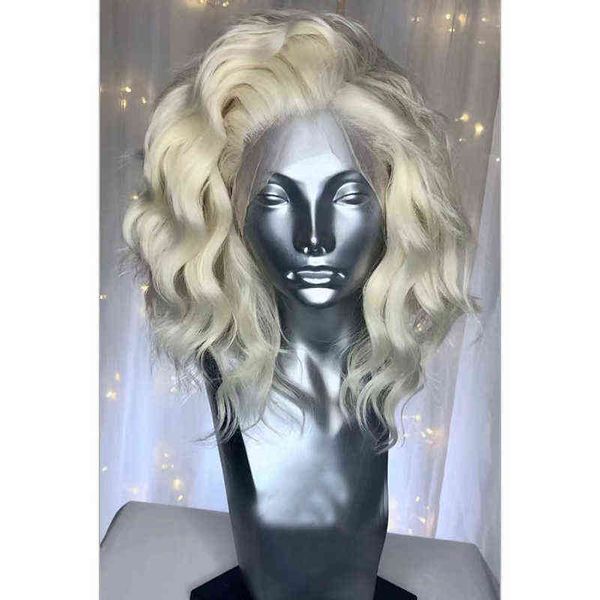 blonde wig short synthetic lace front heat resistant fiber hair deep wave s natural for white women cosplay side part 220705, Black