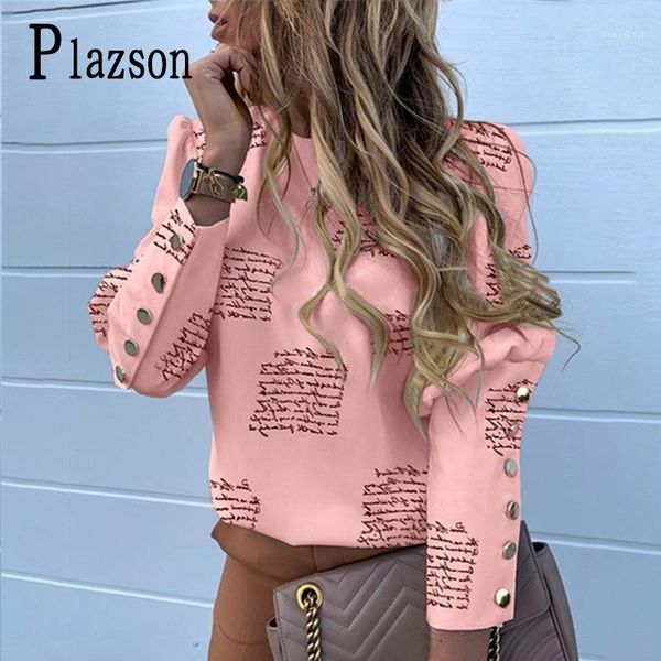 blusas 2020 summer fall youtube tiktok fashion women blouses long sleeve o neck slim fit shirts leisure letter print tee 1, White
