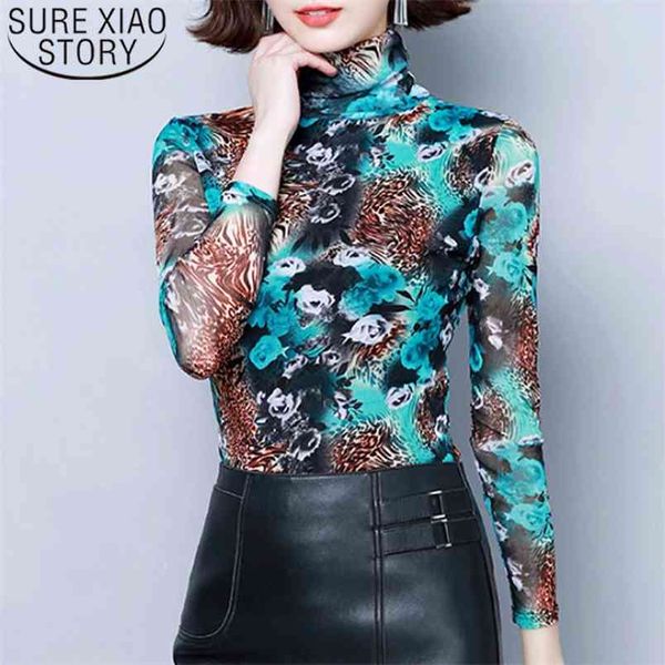 blusas mujer de moda autumn fashion women basic shirt casual turtleneck long sleeve printed blouses 6205 50 210506, White