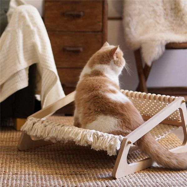 bohemian weaving style cat hammock pure cotton woven bed canvas beds birch frame small dog accessories & furniture