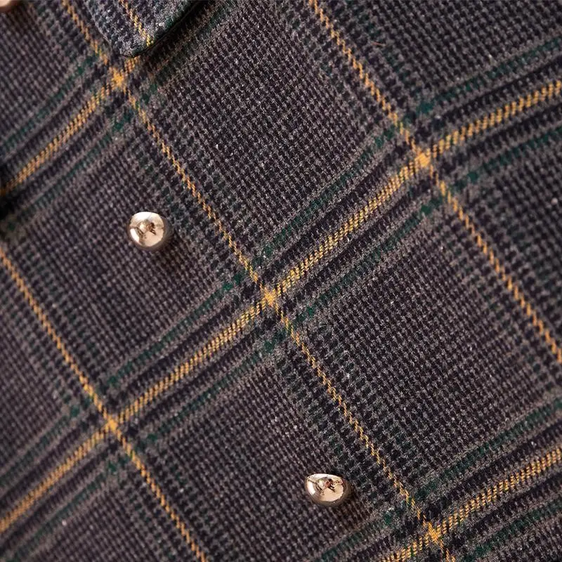 L-4XL Plus Size Women Elegant Two Piece Dress Winter 2020 Fashion Long Sleeve Shirts and Plaid Sleeveless Pleated Woolen Dresses