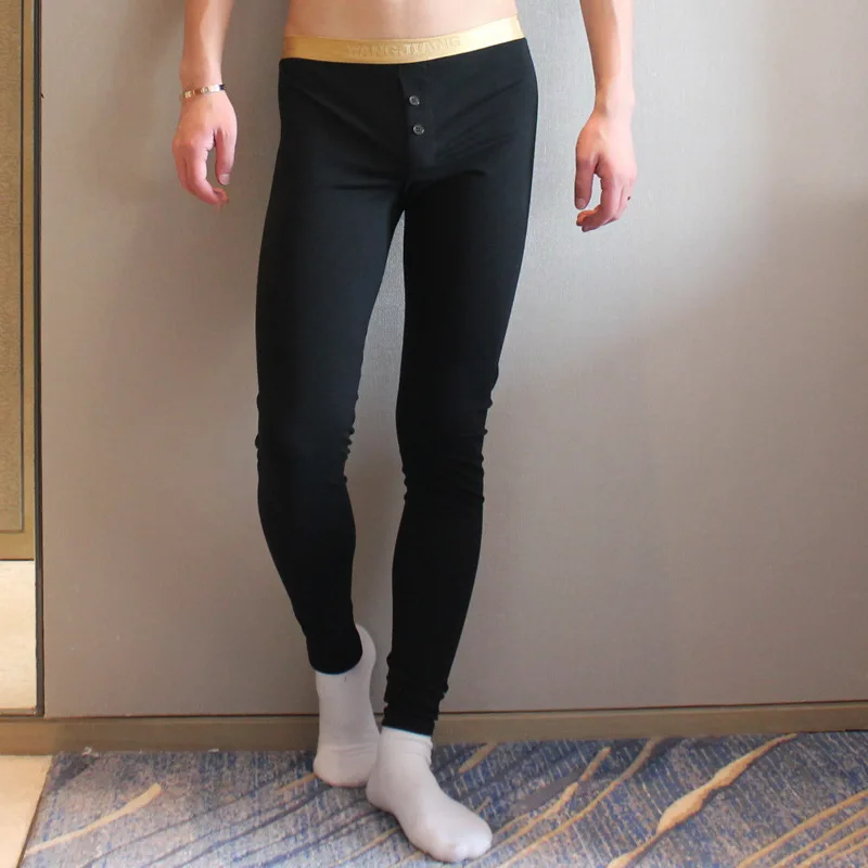 Men's cultivate one's morality leggings breathable warm trousers thin solid cotton Long johns fashion male legging pants