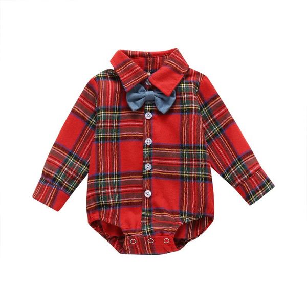born baby boy christmas bodysuits long sleeve bow tie plaid jumpsuit outfits 0-24m rompers, Blue