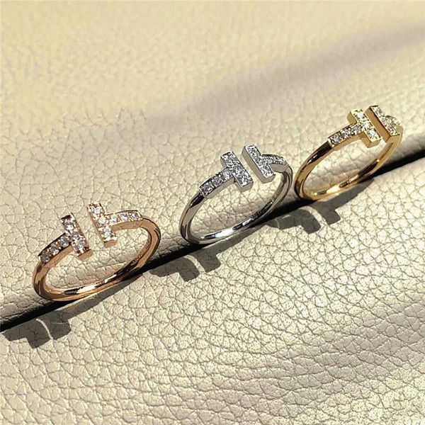 boutique wanghongchao brand double t full diamond ring women's plated fashion open mouth, Silver