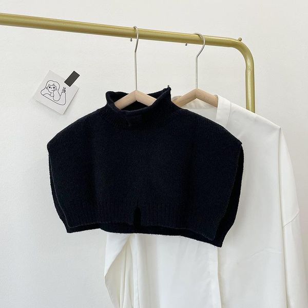 bow ties sitonjwly womens fake collar female turtleneck false high neck warmer half knitted shirt detachable small vest, Black;gray