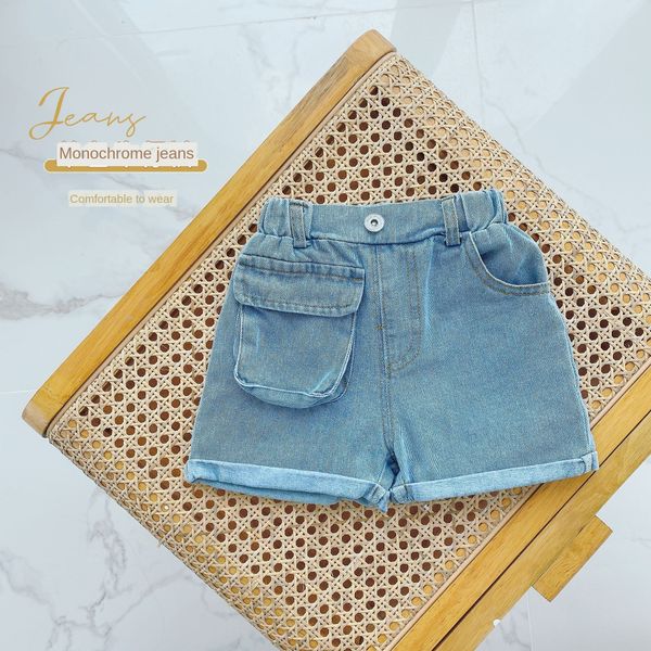 boys' denim shorts summer clothing 2020 children's wide-legged five-legged pants boys shorts overalls ' casual overalls fashi, Blue