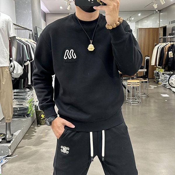 boys' popular letter sweater round neck long sleeve men's pullover 2023 new autumn winter white simplicity hoodies clothing, Black