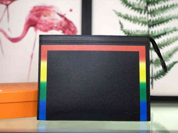 brand designer luxury m30578 rainbow clutch men leather holders long wallet chain wallets compact purse clutches evening key card, Black;red