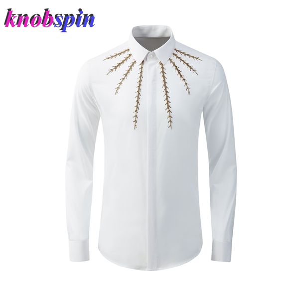 brand men's shirt long sleeve slim beading design chemise homme plus size -4xl solid business male dress shirts, White;black