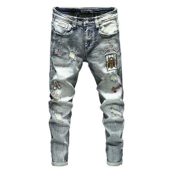 brand new мужские джинсы мода проблемные zipper рваные джинсы мужские дизайнерская тощий байкер бегуны мужчин джинсы мужские, Blue