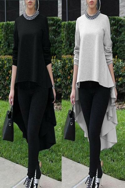 brand new women solid loose blouse shirt asymmetrical sleeve long high low size waterfall tuxedo plus size23031265205, White